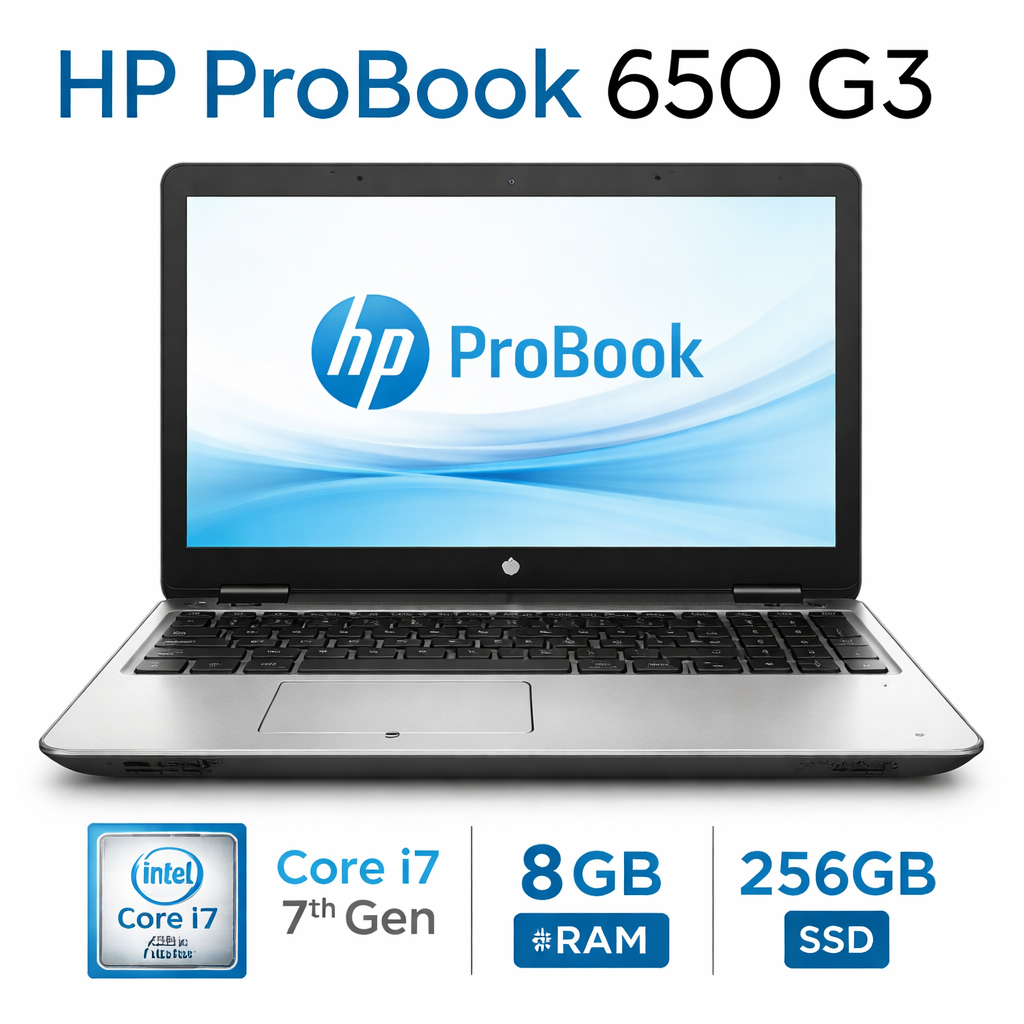 The HP ProBook 650 G3 is a powerful and dependable business-class laptop designed for professionals, students, and office users. It is equipped with a 7th Generation Intel Core i7 processor, delivering smooth and efficient performance for multitasking, office applications, browsing, and business software.